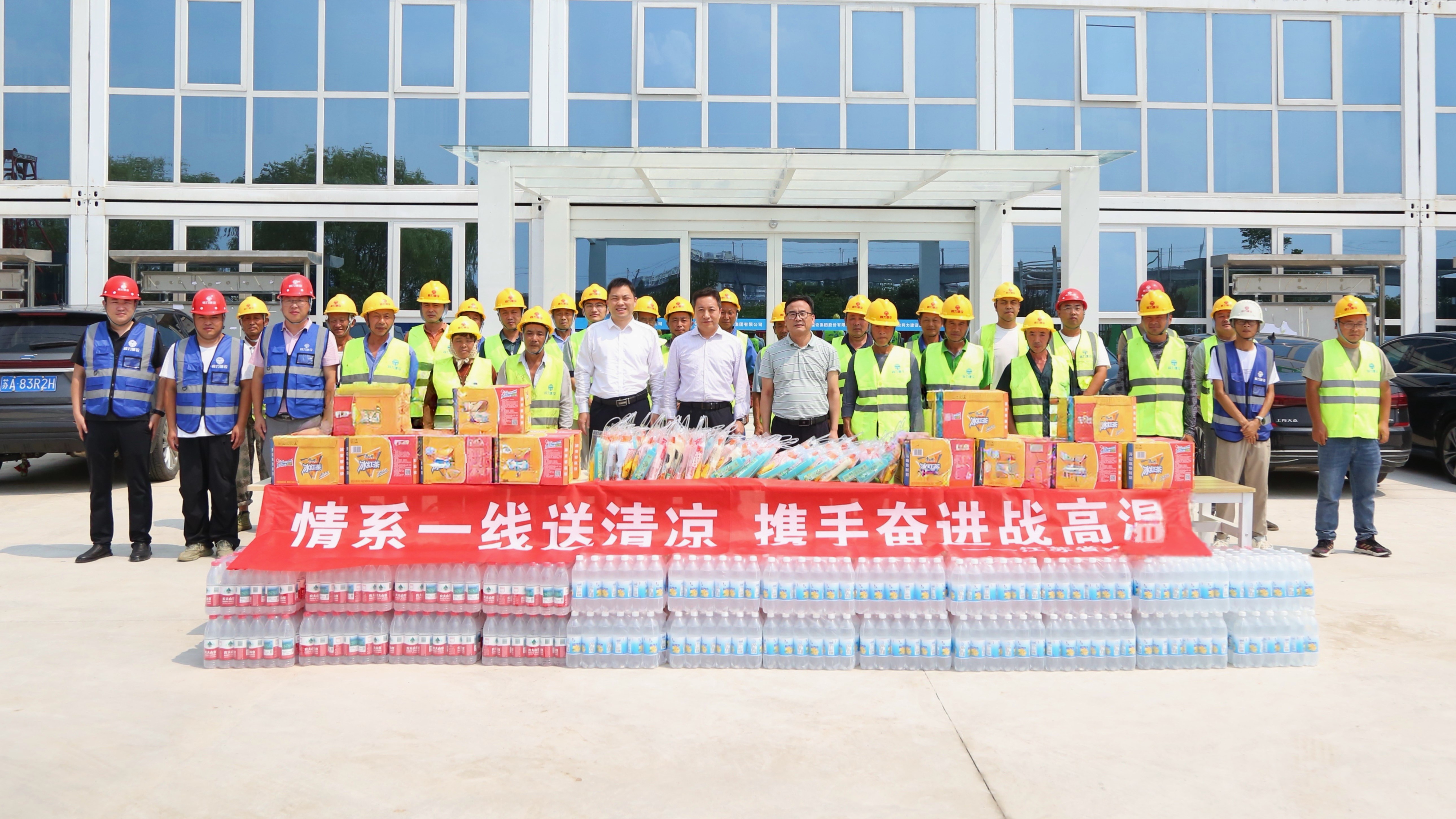 炎炎夏日送清涼,情意深深暖人心。為切實(shí)做好高溫天氣下的安全生產(chǎn)工作,保障一線廣大員工的身心健康,7月17日,集團(tuán)黨委書記、執(zhí)行總裁張震宇,副總裁高寶儉分別帶隊(duì),深入南京城東污水處理廠、312國(guó)道、湯山PC工廠等項(xiàng)目和生產(chǎn)車間,看望慰問在高溫下堅(jiān)守崗位的一線員工,為他們送去防暑降溫物品。
