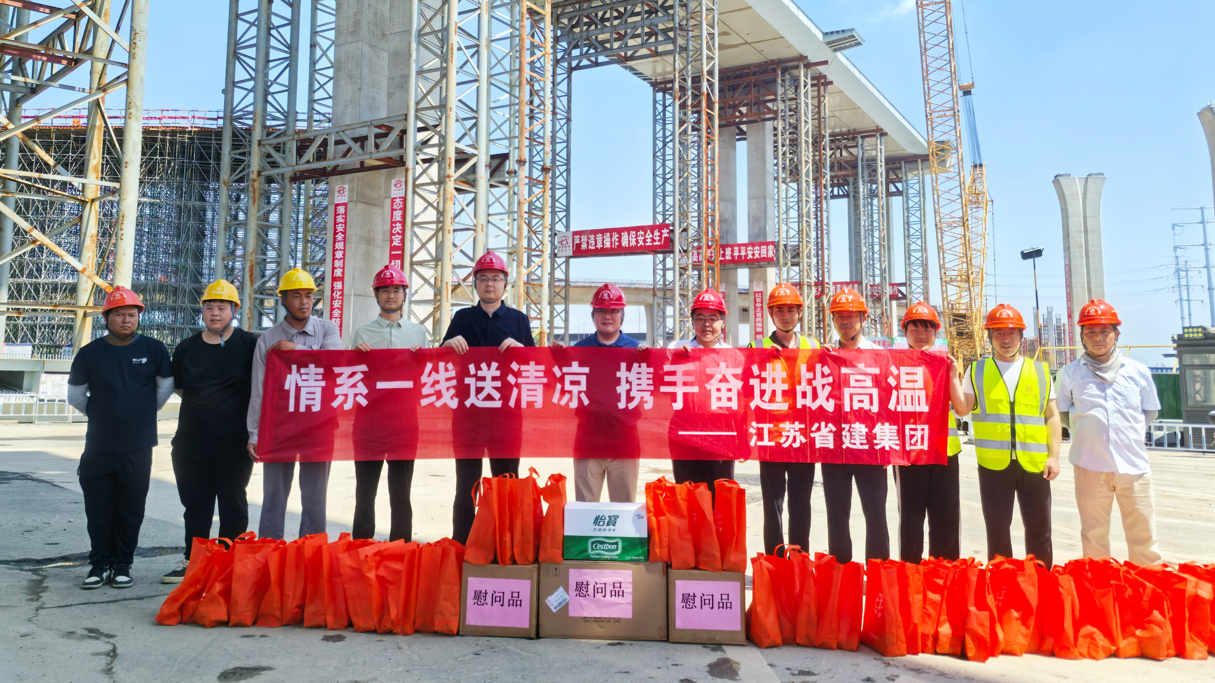 炎炎夏日送清涼,情意深深暖人心。為切實(shí)做好高溫天氣下的安全生產(chǎn)工作,保障一線廣大員工的身心健康,7月17日,集團(tuán)黨委書記、執(zhí)行總裁張震宇,副總裁高寶儉分別帶隊(duì),深入南京城東污水處理廠、312國(guó)道、湯山PC工廠等項(xiàng)目和生產(chǎn)車間,看望慰問在高溫下堅(jiān)守崗位的一線員工,為他們送去防暑降溫物品。